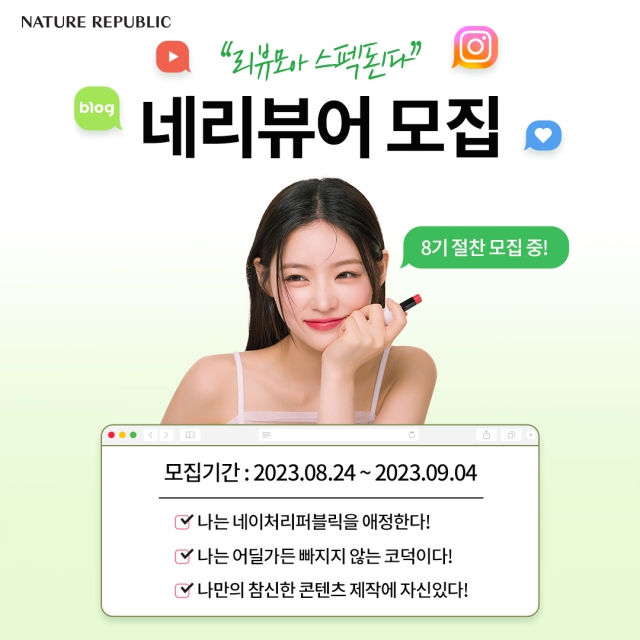 네이처리퍼블릭 대학생 온라인 리뷰 서포터즈 <네리뷰어 8기> 모집