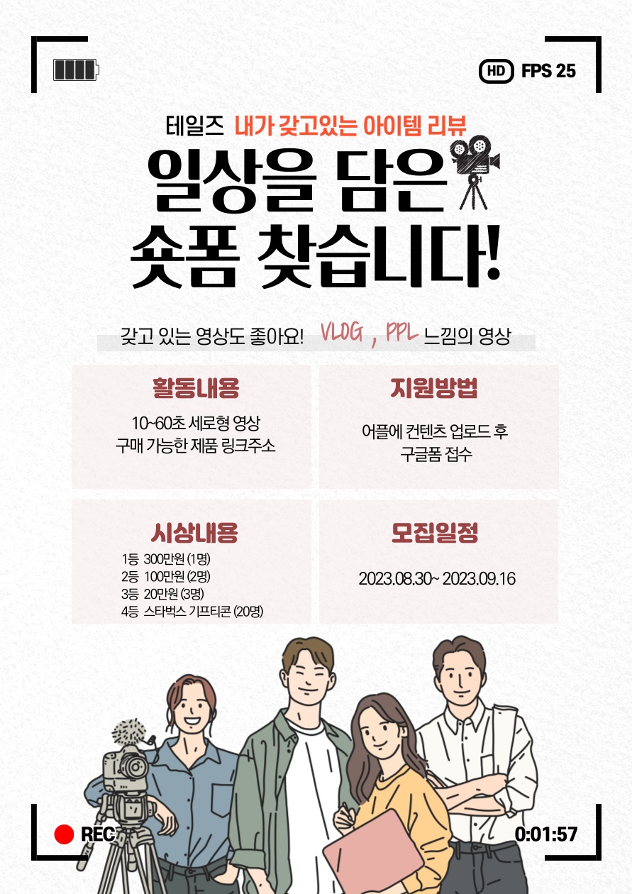 - 테일즈 APP에서 '일상을 담은 숏폼 리뷰 컨텐츠'를 공모하오니