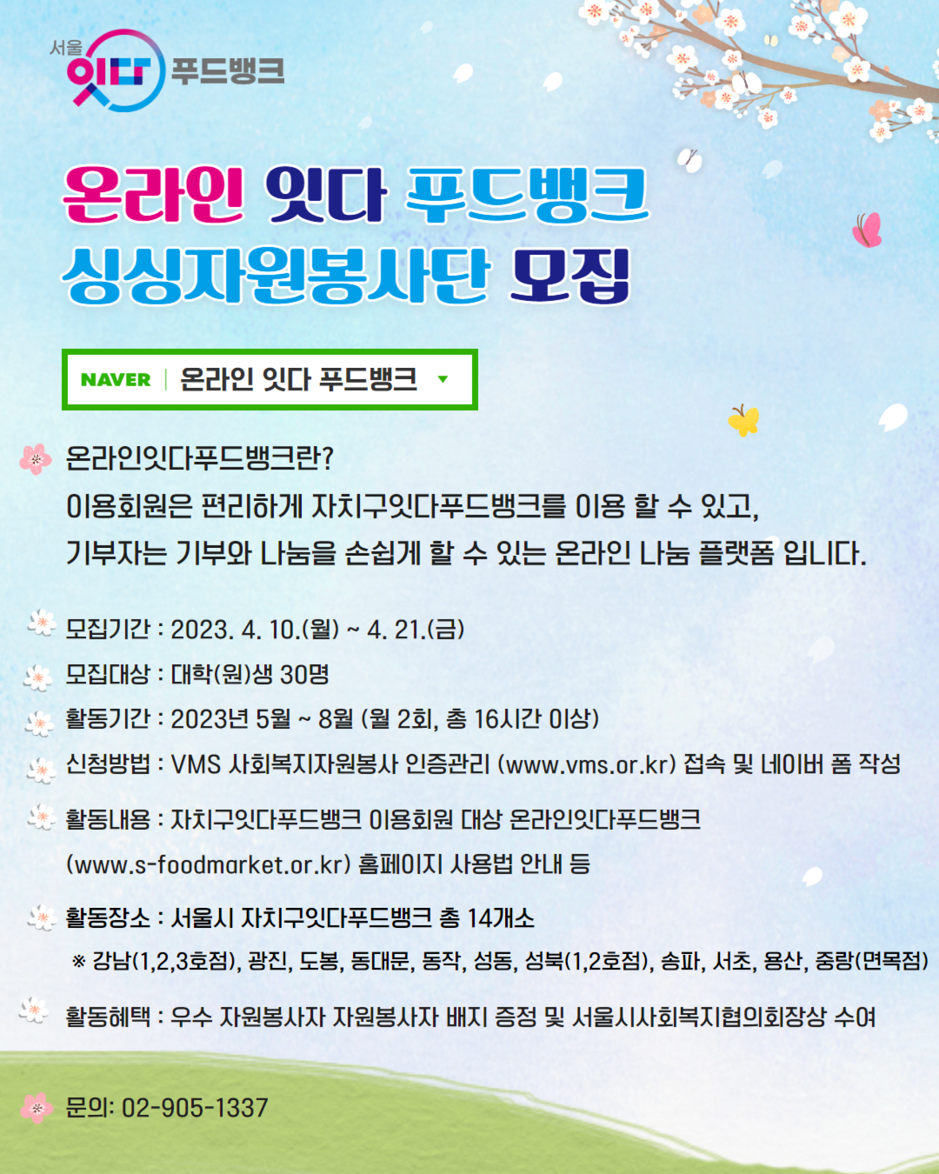 서울잇다푸드뱅크센터 하반기 싱싱자원봉사단 모집