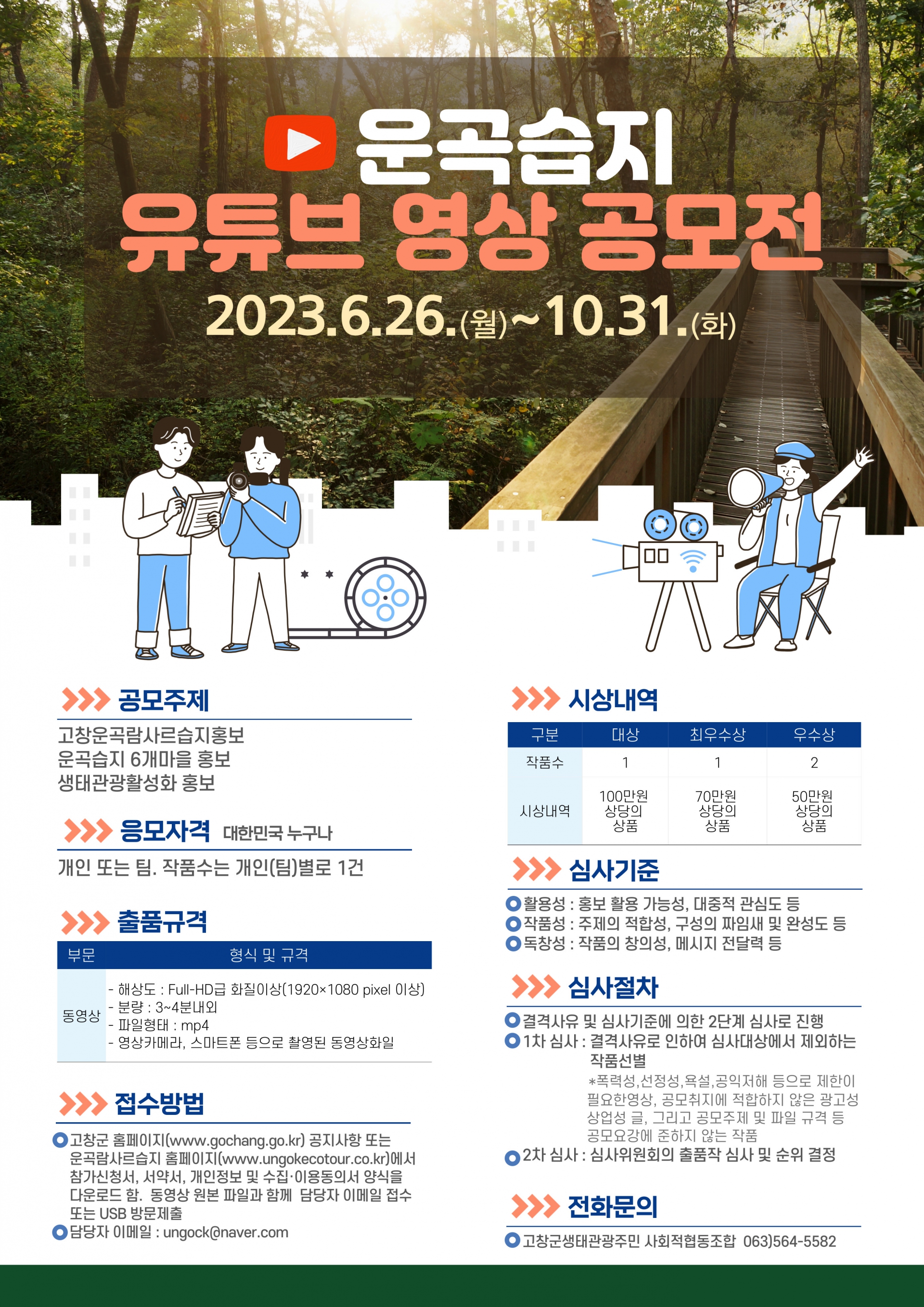 - 고창군에서 운곡습지 유튜브 영상 공모전을 개최하오니