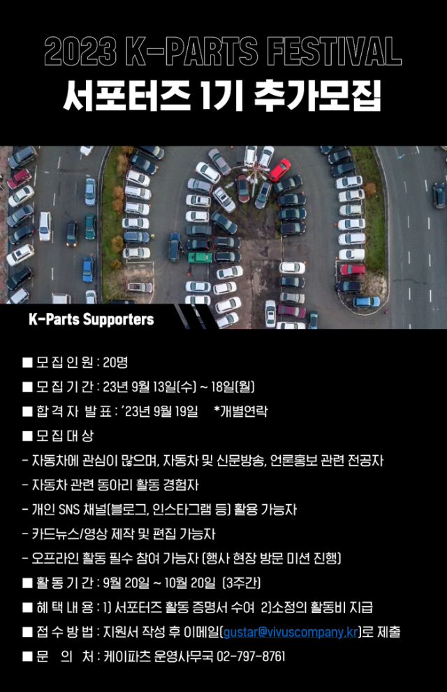 - 2023 K-PARTS FESTIVAL 케이파츠 서포터즈 1기를 모집하오니