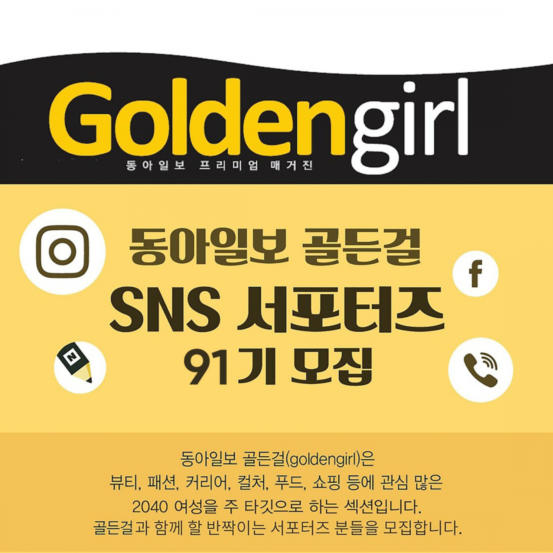동아일보 골든걸 대학생 SNS 서포터즈 91기 모집