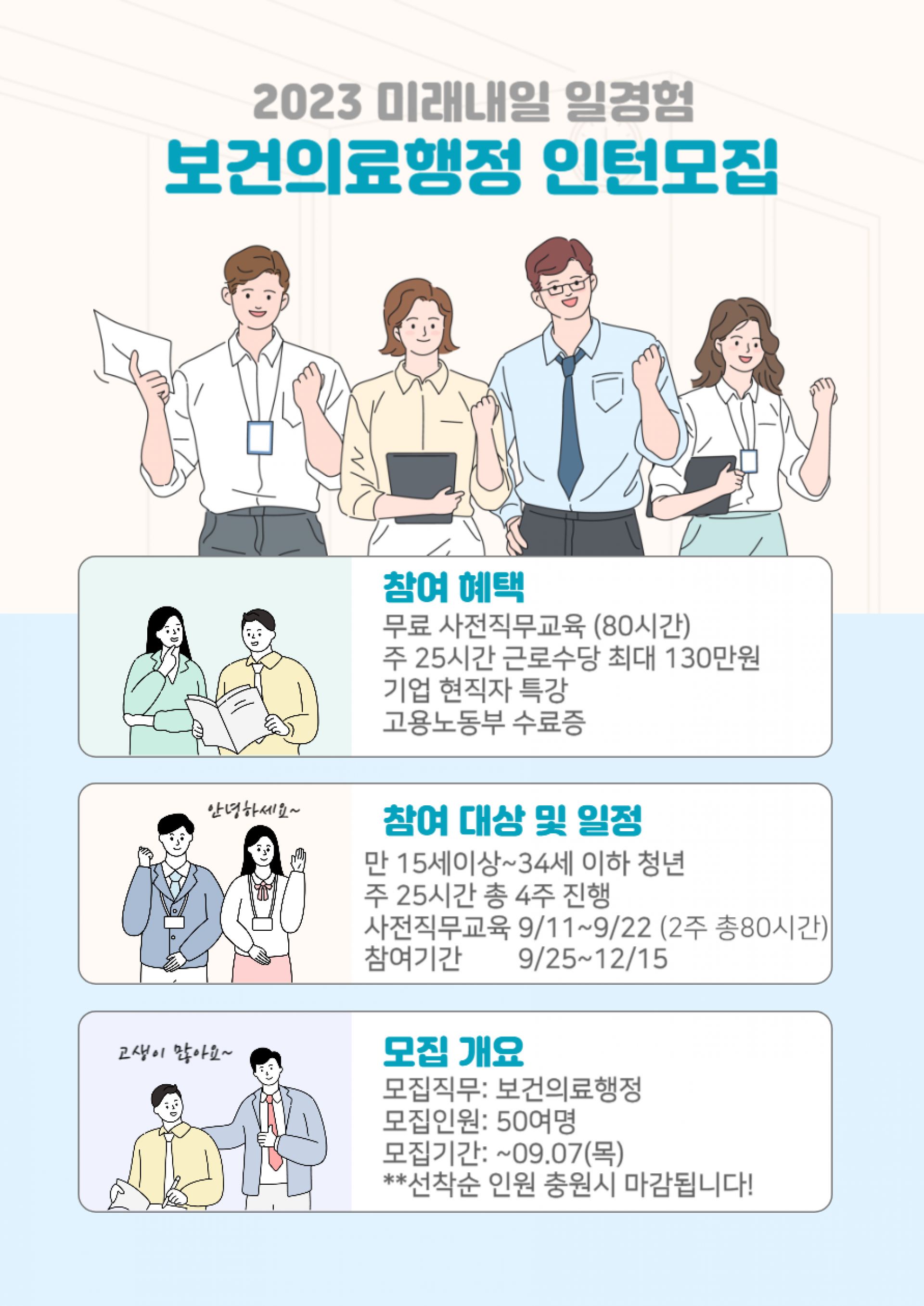 2023 미래내일 일경험 보건의료행정 직무 인턴십 참여자 4차 모집