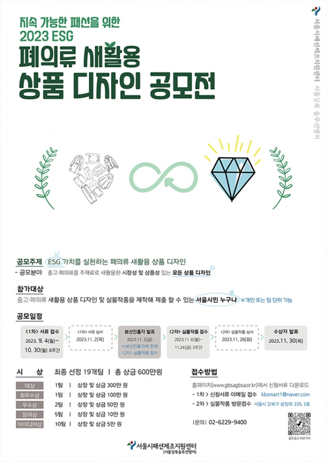 - 지속가능한 패션을 위한 2023 ESG 폐의류 새활용 상품디자인 공모전을