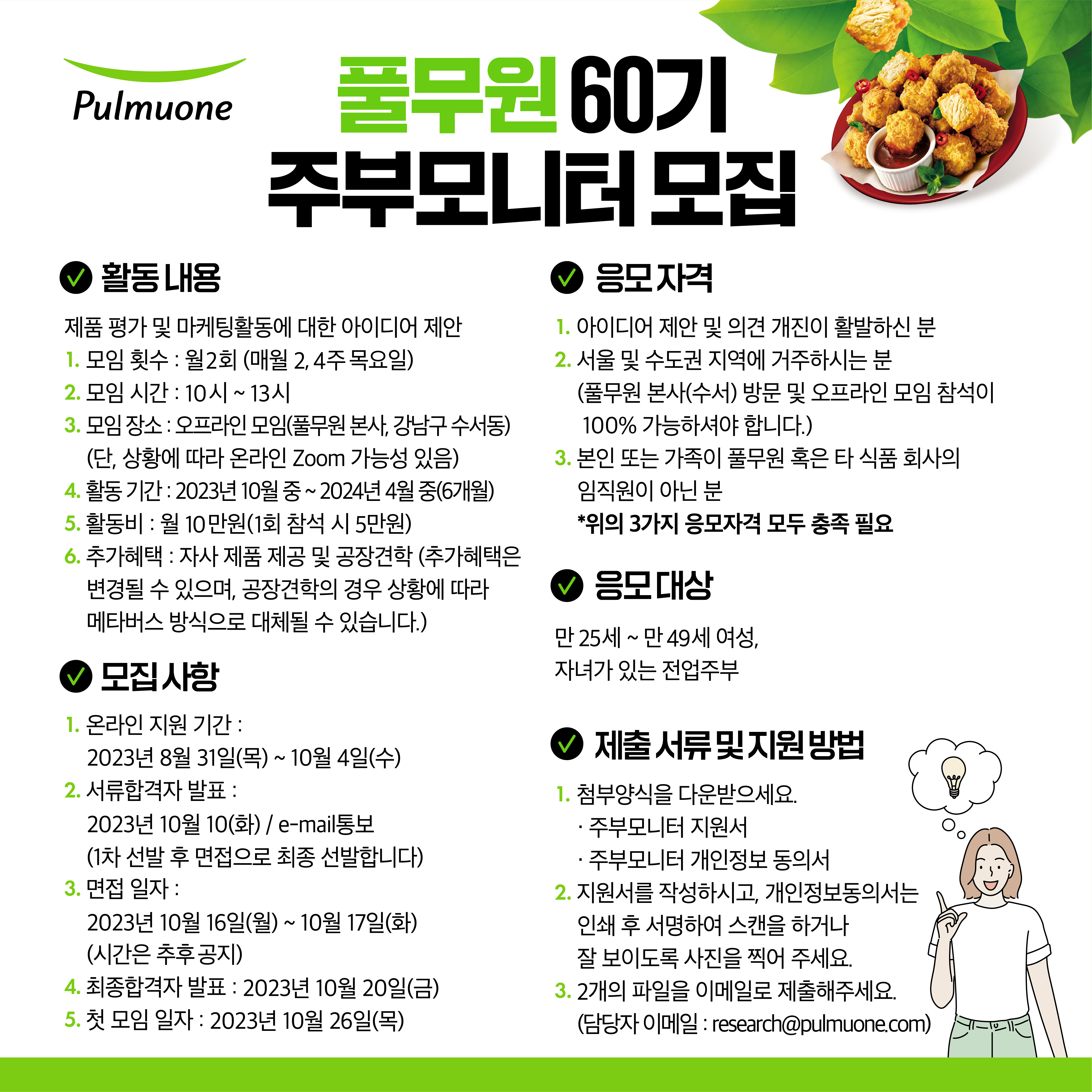 - 풀무원에서 60기 주부모니터를 모집하오니