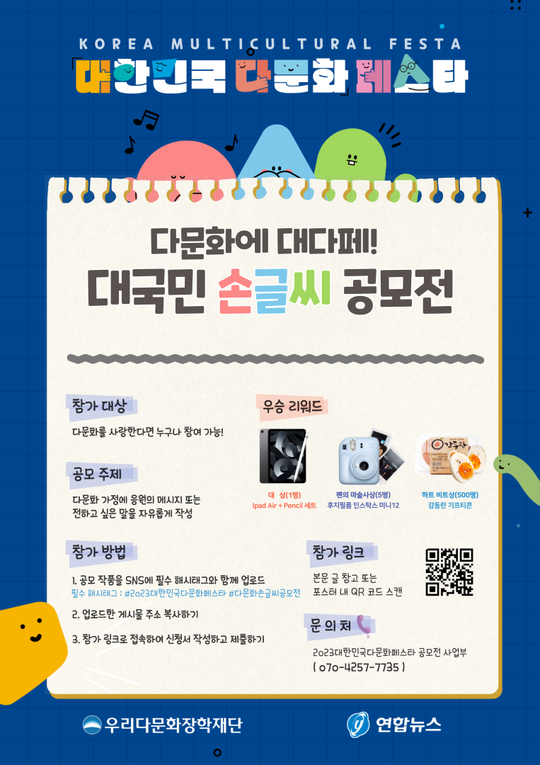 - 2023 대한민국 다문화 페스타 대국민 손글씨 공모전을 개최하오니