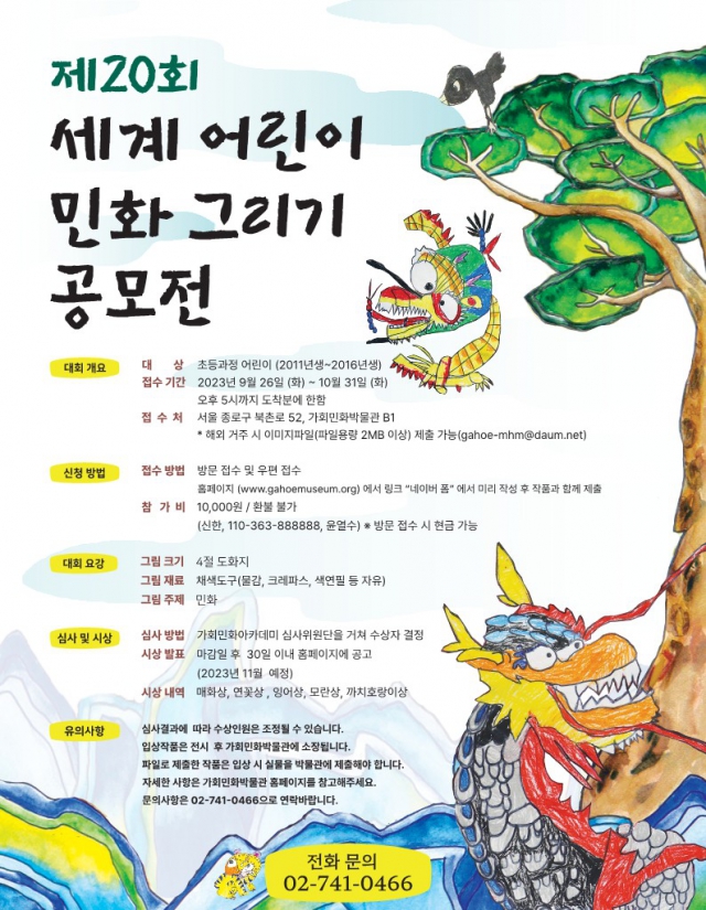 제20회 세계 어린이 민화그리기 공모전으로 진행됩니다.