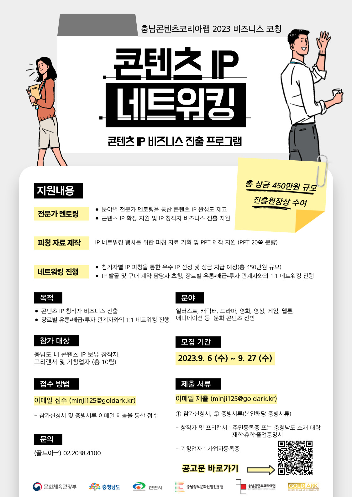 2023 충남콘텐츠코리아랩 <콘텐츠 IP 네트워킹(콘텐츠 IP 비즈니스 진출 프로그램)> 참가자 모집