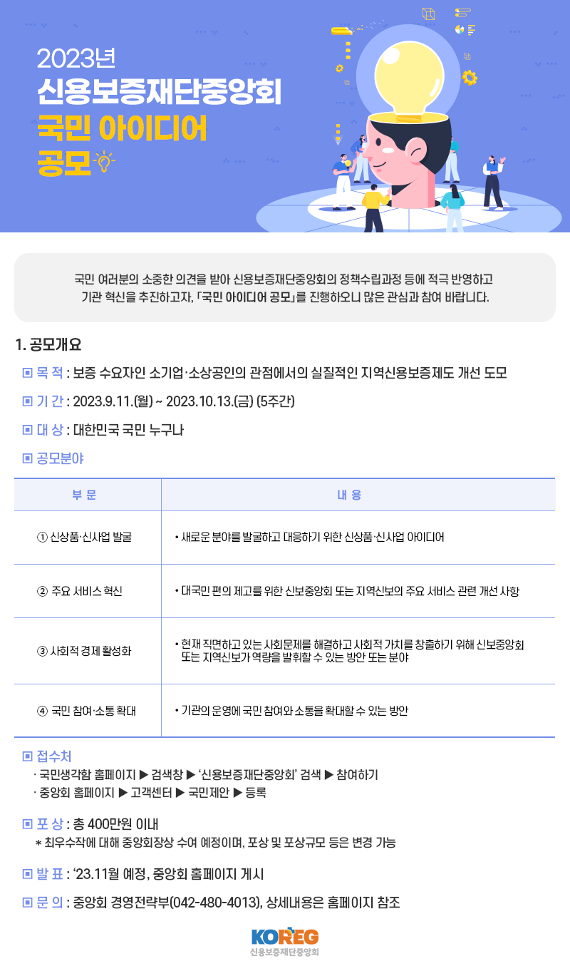- 2023년 신용보증재단중앙회 국민 아이디어 공모를 개최하오니