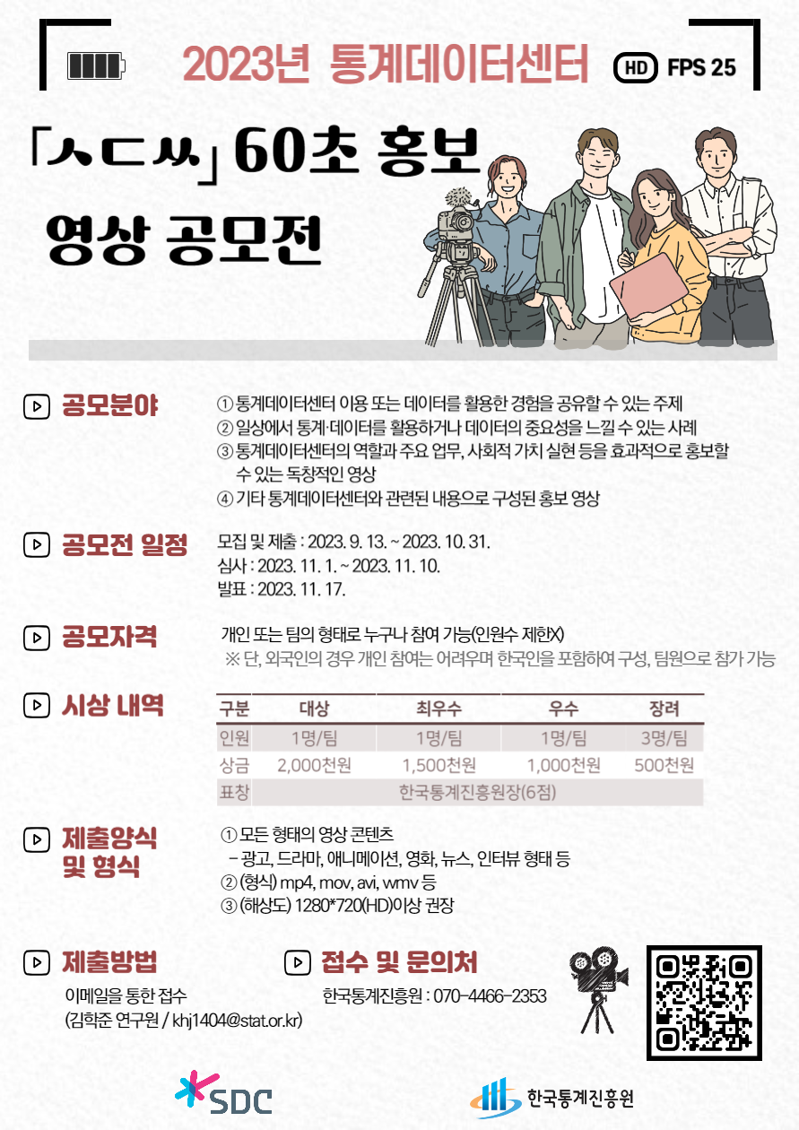 - 통계청 통계데이터센터 'ㅅㄷㅆ' 60초 홍보 영상 공모전을 개최하오니
