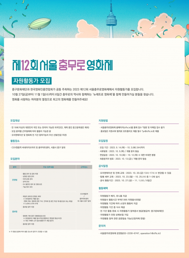 제12회 서울충무로영화제 자원활동가 모집