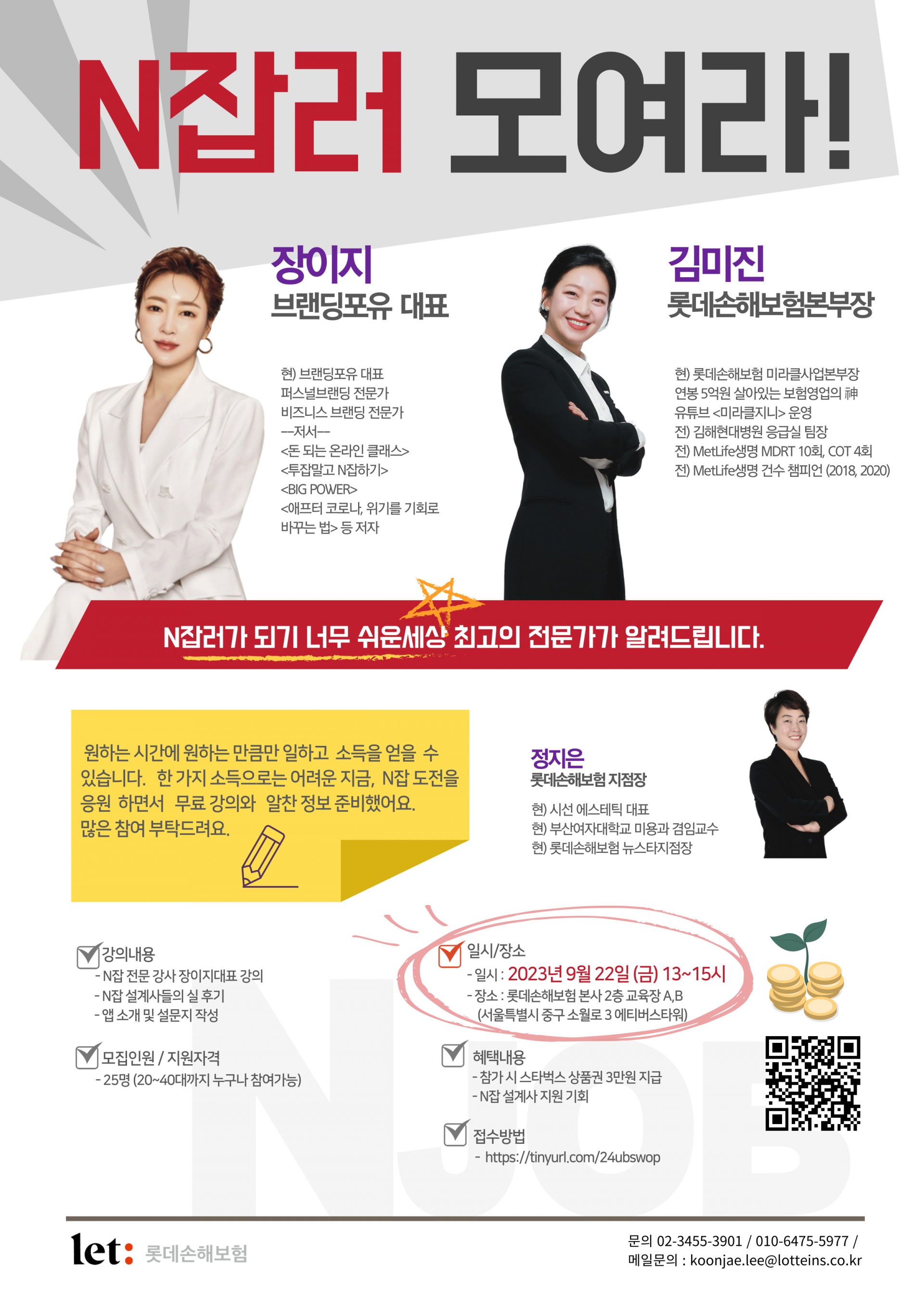 | 혜택 | N잡 설계사 지원 기회, 참가 시 스타벅스 상품권 3만원 지급 外 |