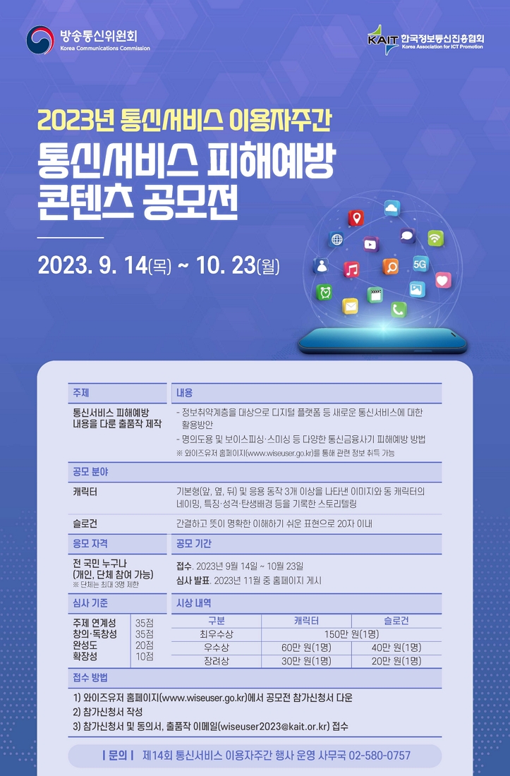 2023년 통신서비스 이용자주간 통신서비스 피해예방 콘텐츠 공모전을