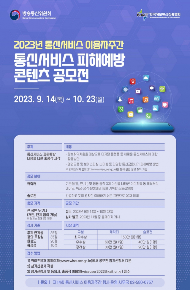 2023년 통신서비스 이용자주간 통신서비스 피해예방 콘텐츠 공모전을