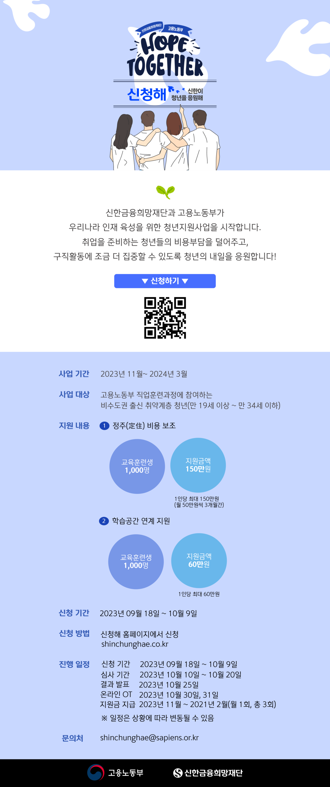 고용노동부X신한금융희망재단 <신청해(신한이 청년을 응원해)> 참가자 모집