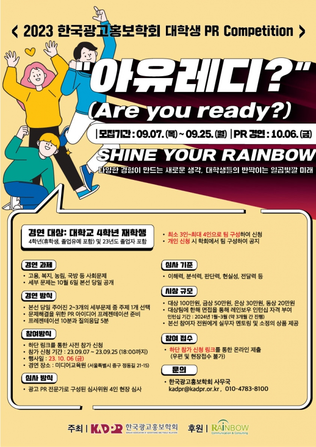 - 2023 한국광고홍보학회 PR Competition <아유레디?>를 개최하오니