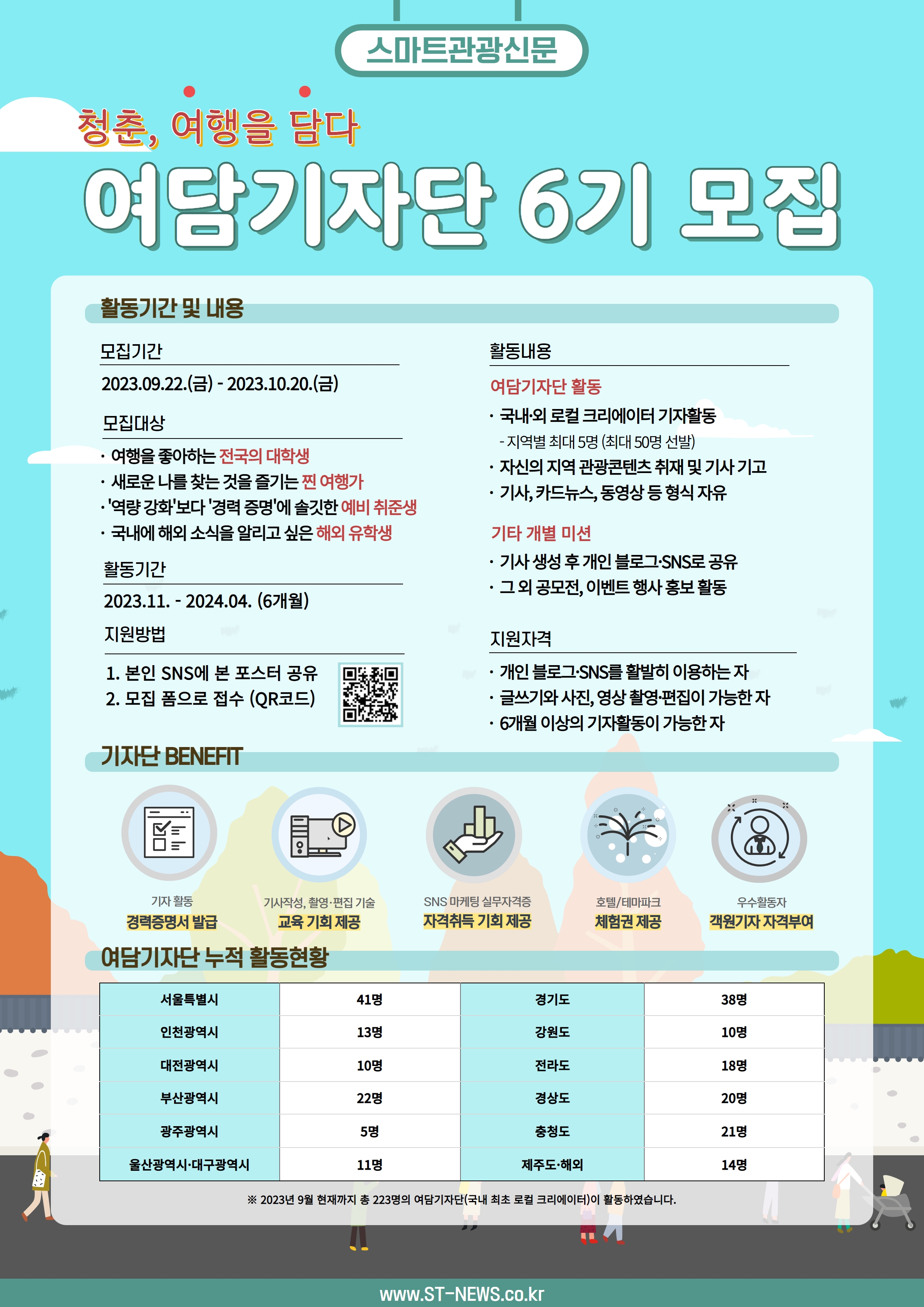 - 스마트관광신문에서 대학생 여행기자단 <여담 6기>를 모집합니다.