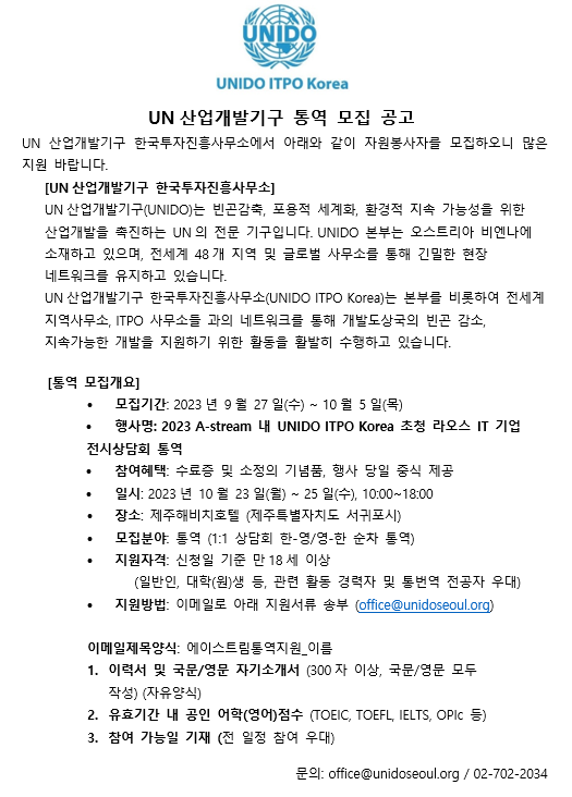 - UN산업개발기구 A-stream 전시회 부스 통역 자원봉사자를