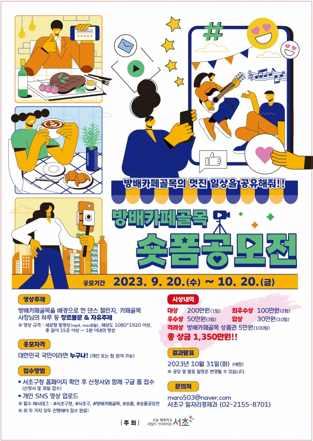 - 방배카페골목 숏폼 공모전을 개최하오니