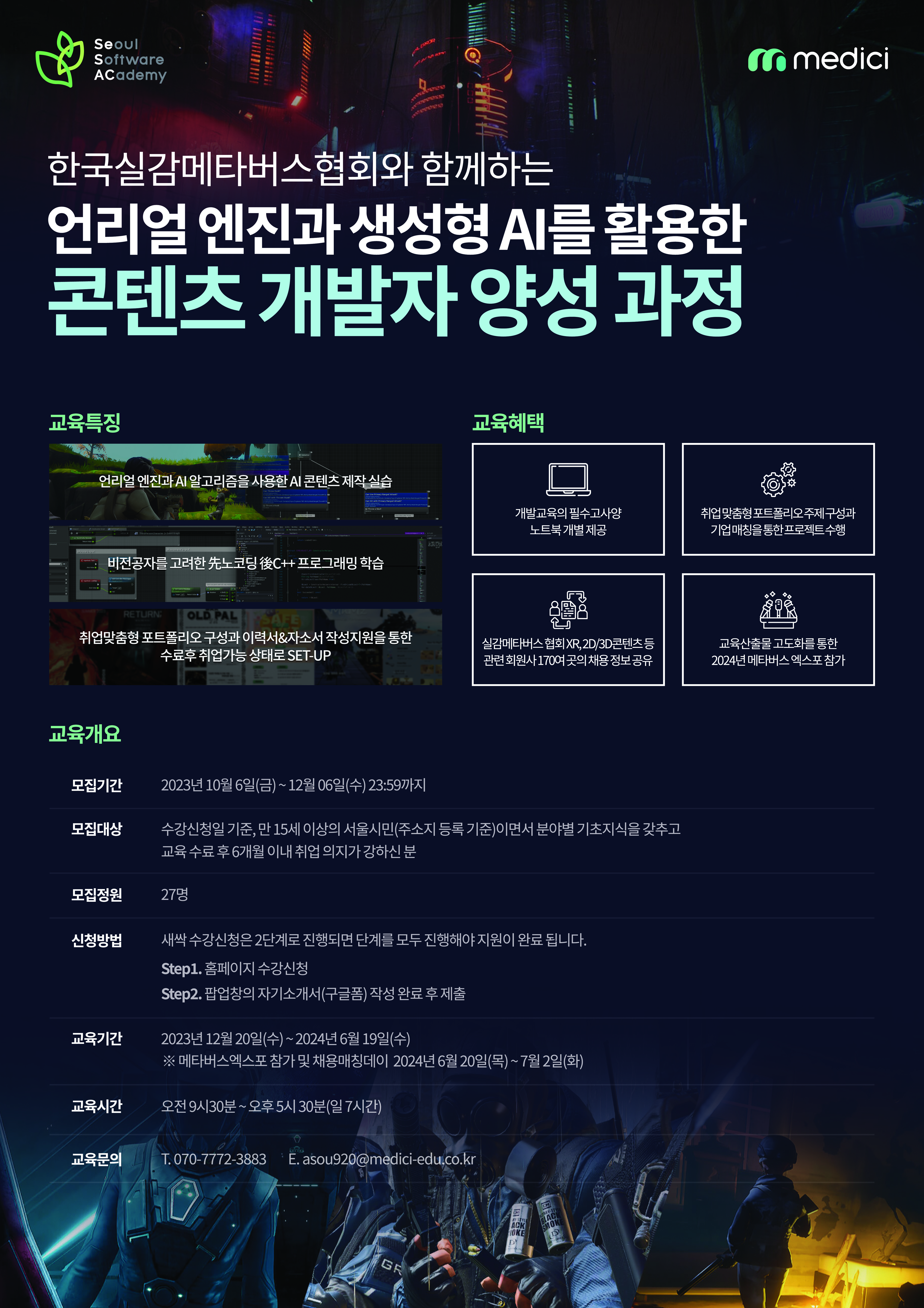 - 서울시민 대상 언리얼+AI 융합콘텐츠 개발자 양성과정을 진행하오니