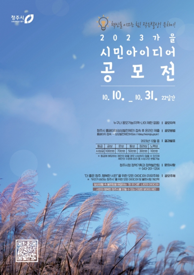 - 청주시에서 2023 하반기 시민아이디어 공모전을 개최하오니