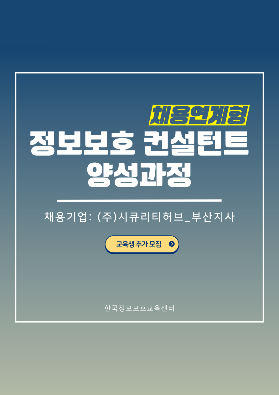 - 부산에서 진행하는 채용연계형 정보보호 양성과정 추가모집을 진행합니다.