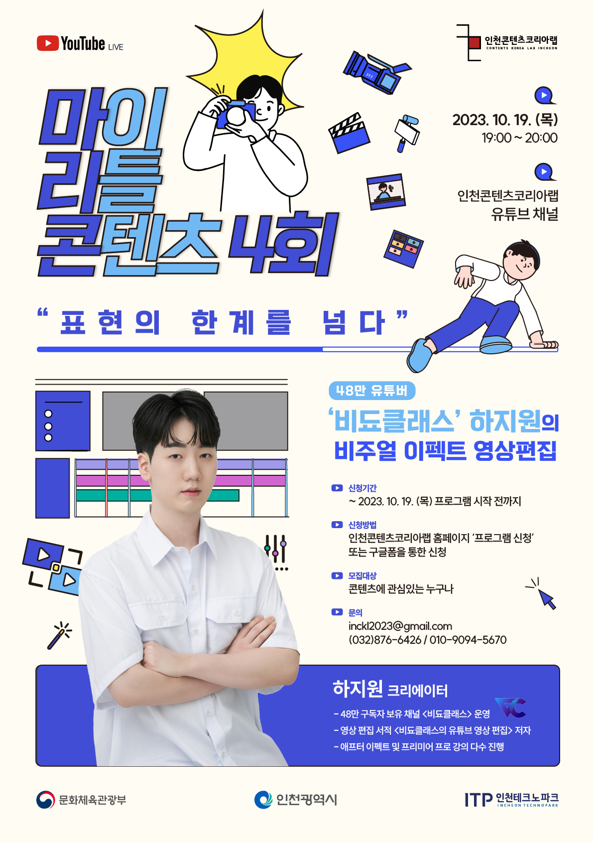 - 교육장소 : [ON-LINE] 인천콘텐츠코리아랩 유튜브 채널 라이브 스트리밍
