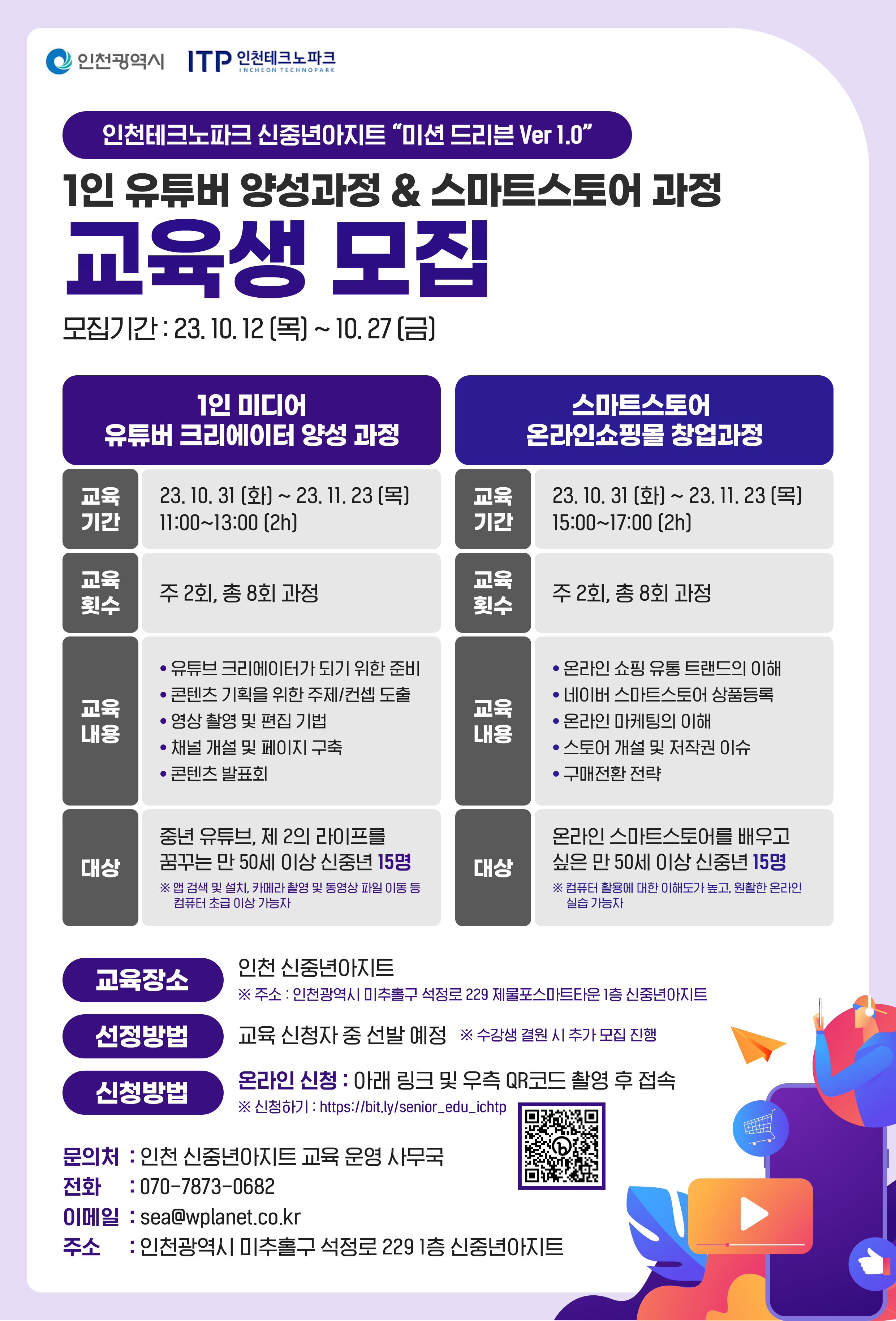 인천 신중년아지트 1인 유튜브 크리에이터 양성과정 & 스마트스토어 창업과정
