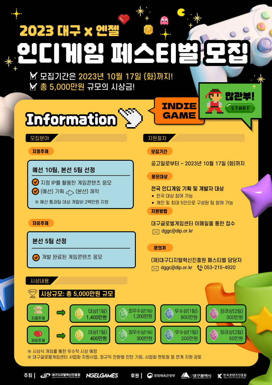 대구글로벌게임센터 대구 X 엔젤 인디게임 페스티벌 참여자 모집