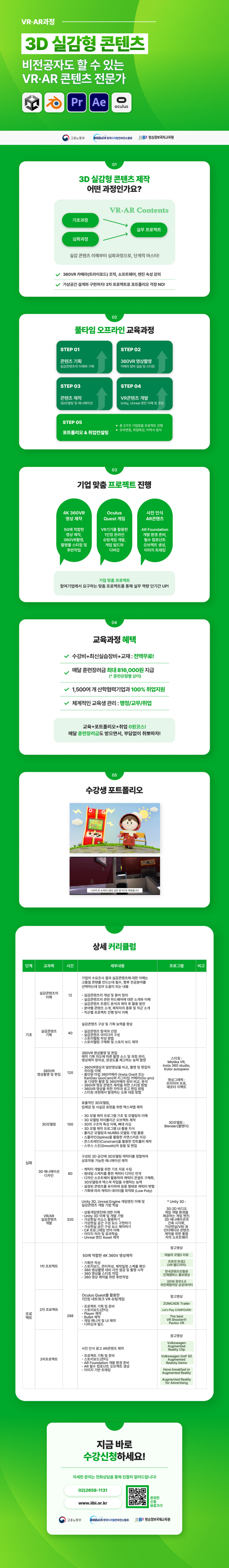 - 3D 기반 실감형(VR/AR) 콘텐츠 제작 전문가 취업 교육생을 모집합니다.