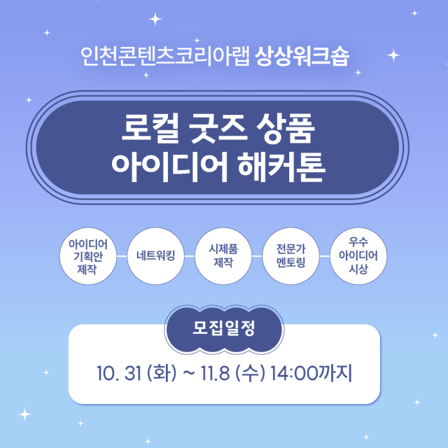 - 인천콘텐츠코리아랩 홈페이지 내 상상워크숍 프로그램 신청 [ 바로가기 ]