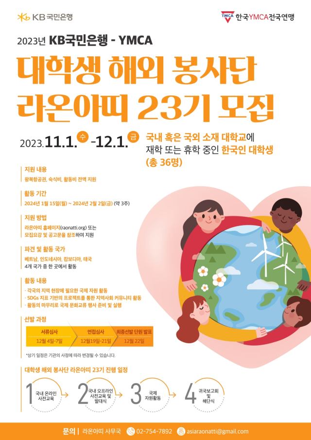 2023년 KB국민은행-YMCA 대학생 해외 봉사단 라온아띠 23기 단원 모집