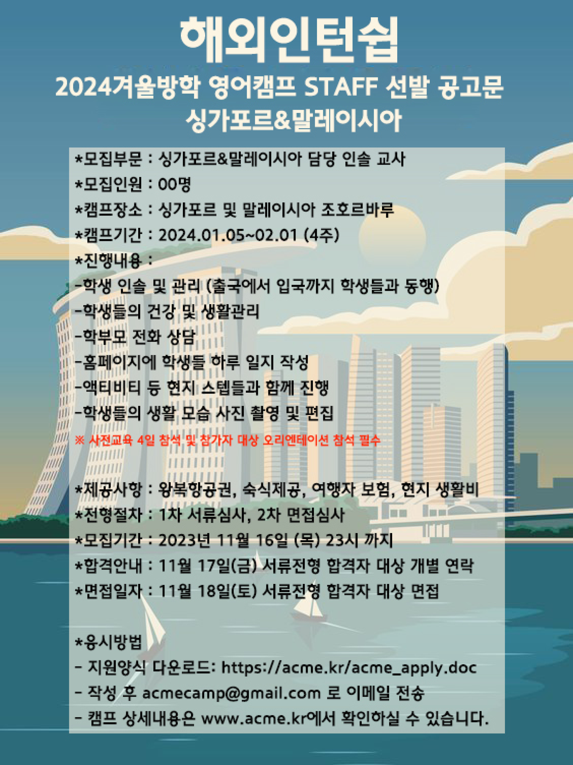싱가포르 2024겨울방학 영어캠프 STAFF 선발 공고문 2차