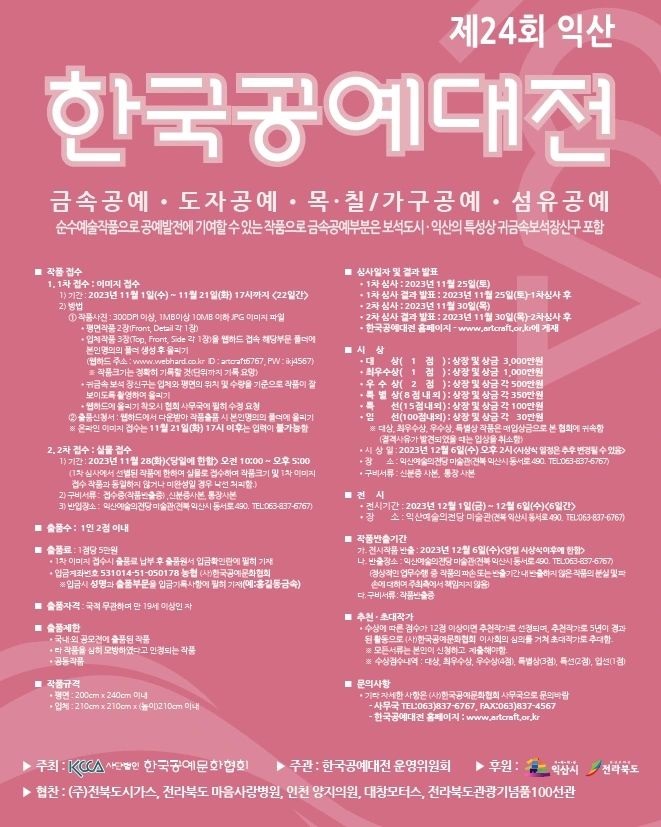 - 2023 제24회 익산 한국공예대전 전국공모전을 개최하오니