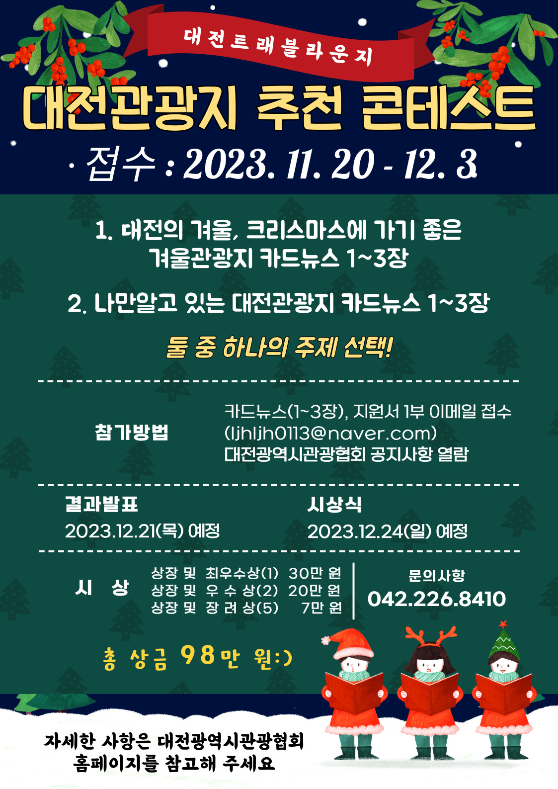 | 시상내역 | 최우수상(1점) : 대전광역시관광협회 표창 및 상금 30만원 外 |