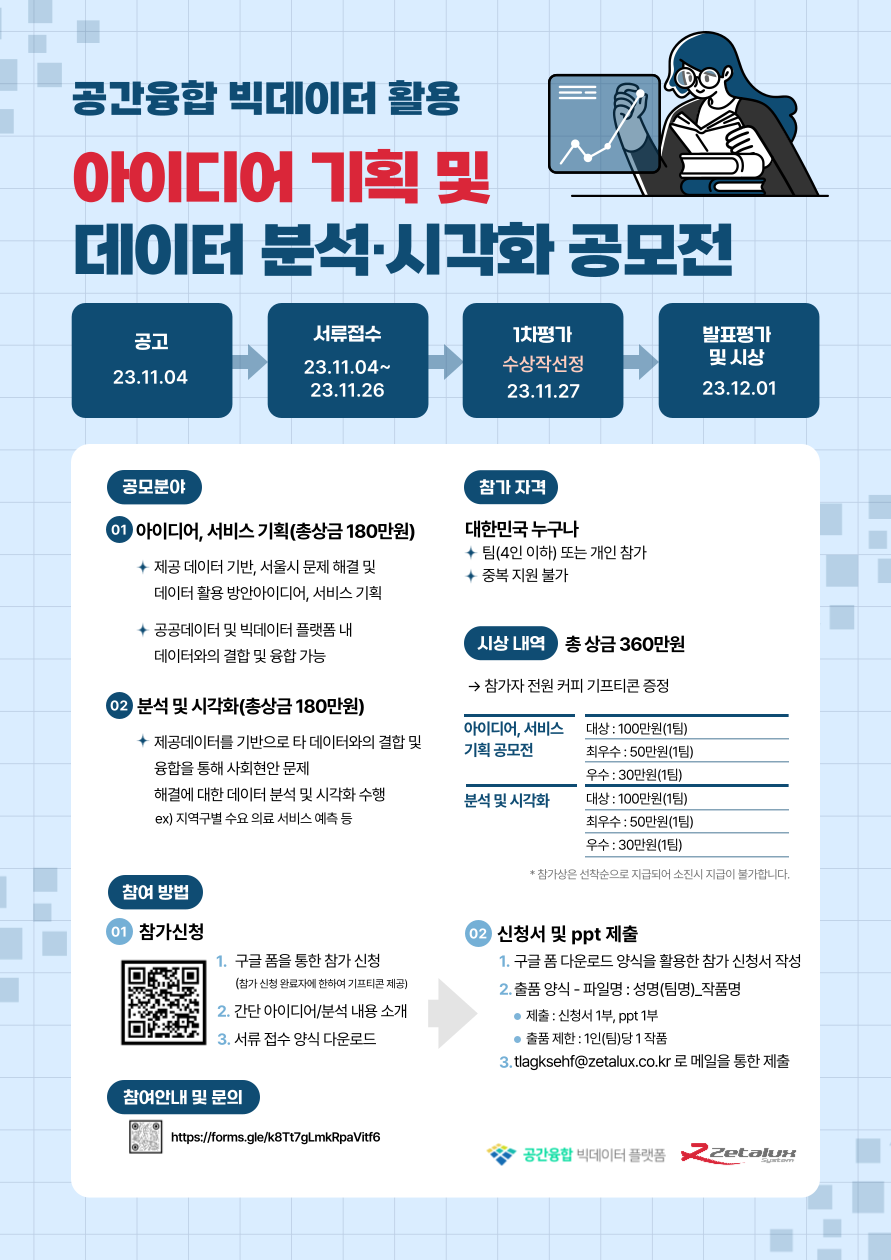 - 공간융합 빅데이터 활용 아이디어 기획 및 데이터 분석·시각화 공모전을