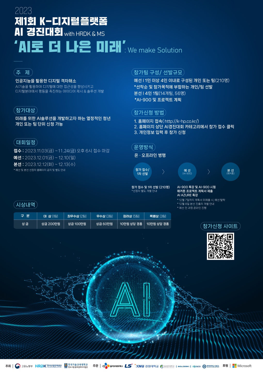 - 제1회 K-디지털 플랫폼 AI 경진대회 'AI로 더 나은 미래'를 개최하오니
