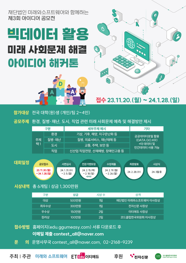 - 빅데이터 활용 미래 사회문제 해결 아이디어 해커톤을 개최하오니