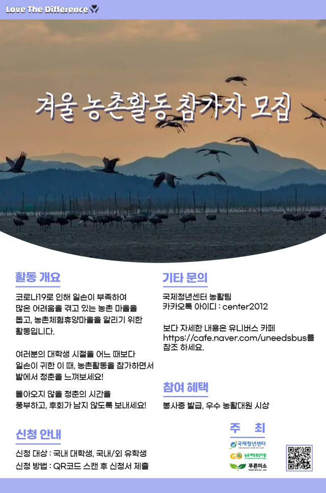 - 2024 겨울방학 농어촌 봉사활동의 참가자를 모집하오니