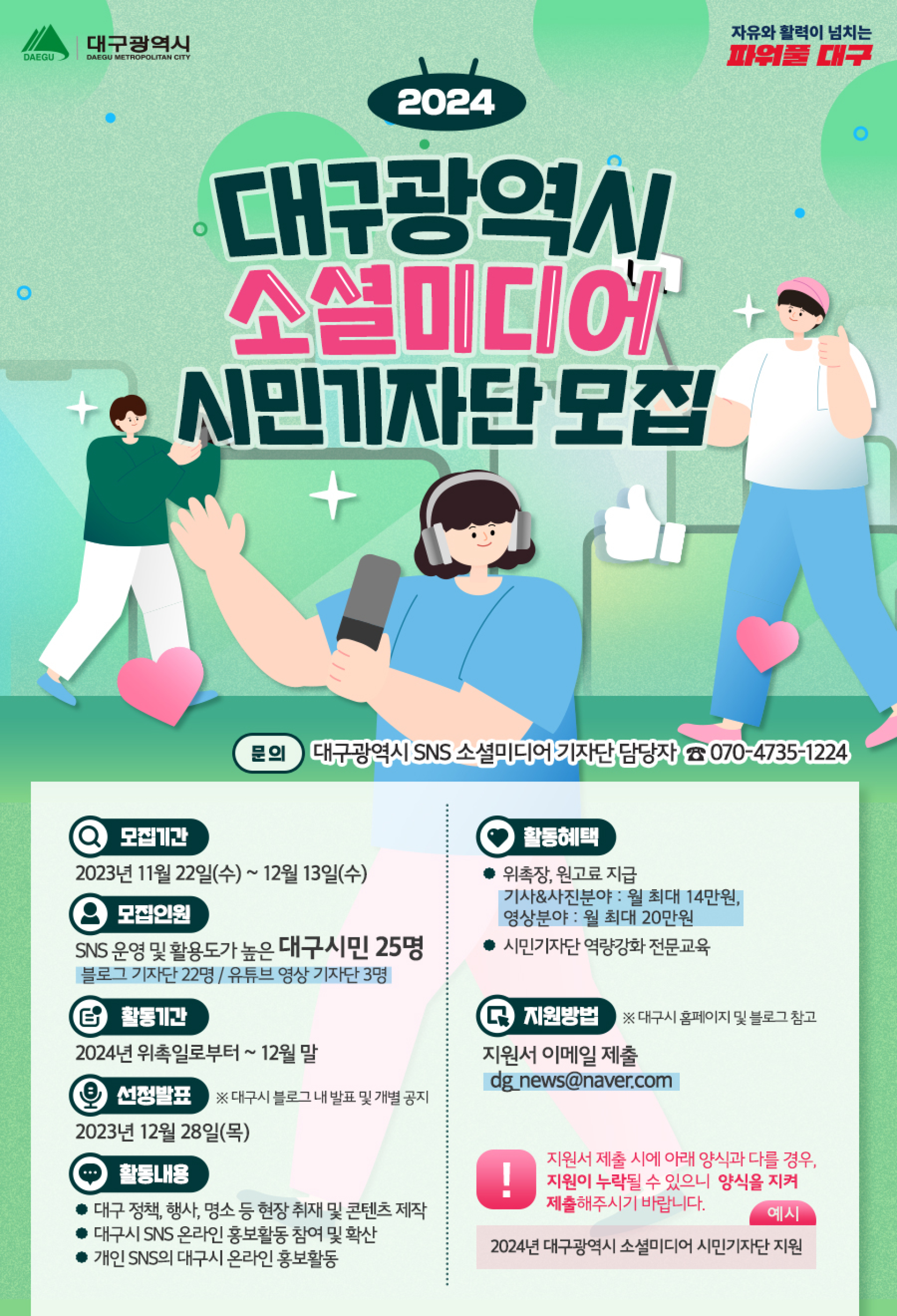 - 2024년 대구시 소셜미디어 시민기자단을 모집합니다.