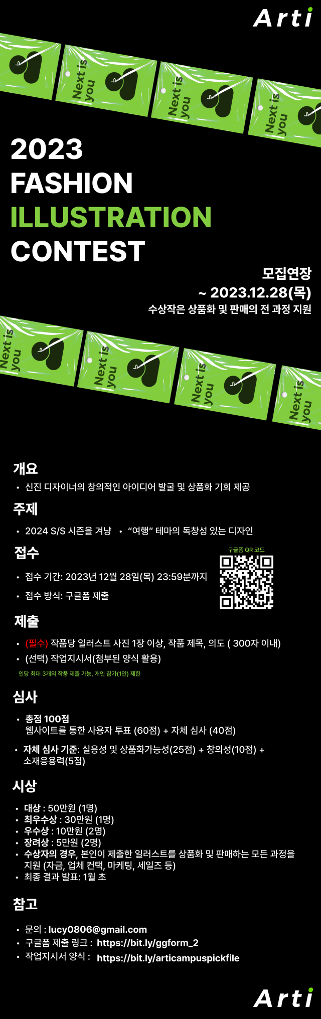 - 2023 ARTI 패션 일러스트레이션 콘테스트를 개최하오니