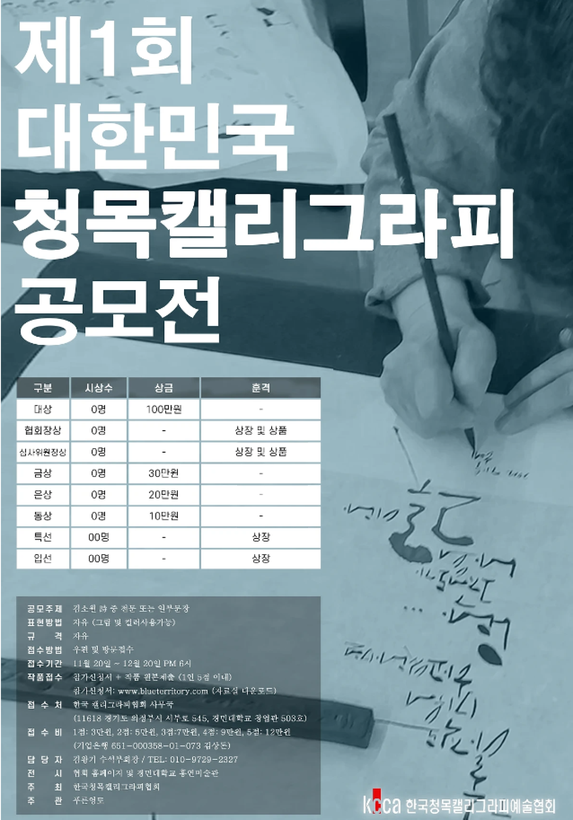 - 제1회 대한민국 청목캘리그라피 공모전을 개최하오니