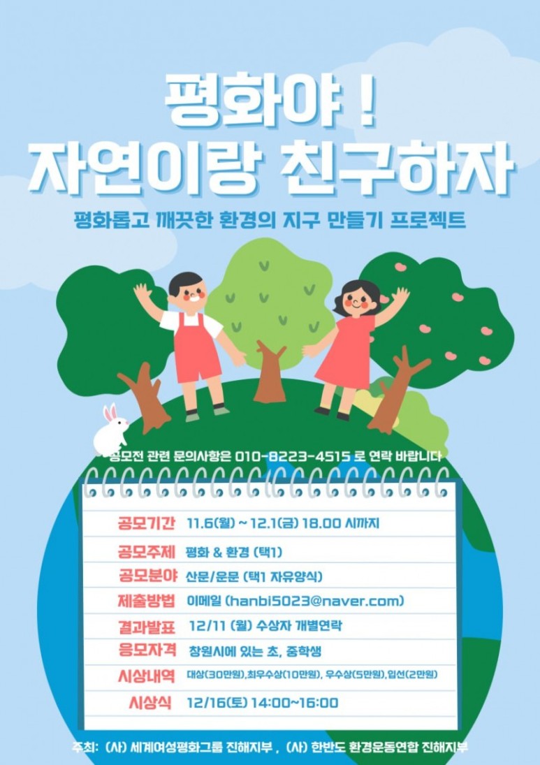 <평화야! 자연이랑 친구하자> 문학 공모전을 개최하오니