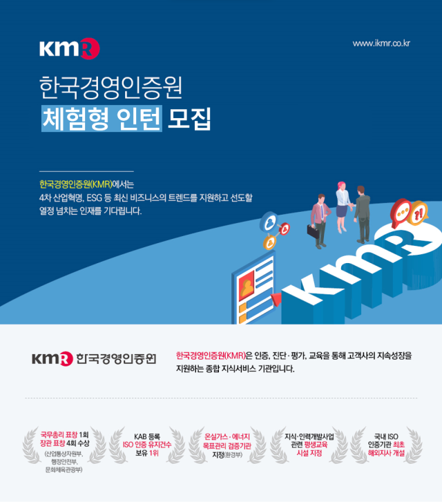 - 한국경영인증원(KMR) 2023년 하반기 체험형 인턴을 모집하오니
