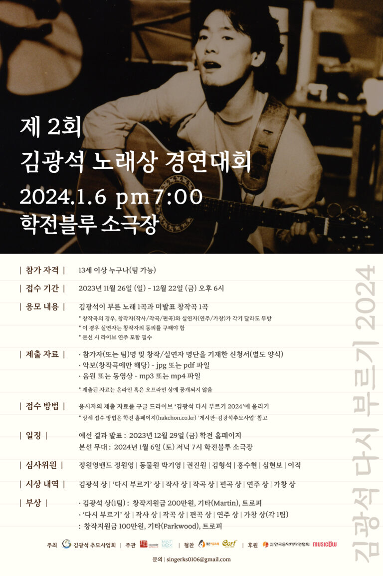 2024년 ‘제 2회 김광석 노래상 경연대회-김광석 다시 부르기 2024’에 함께하실