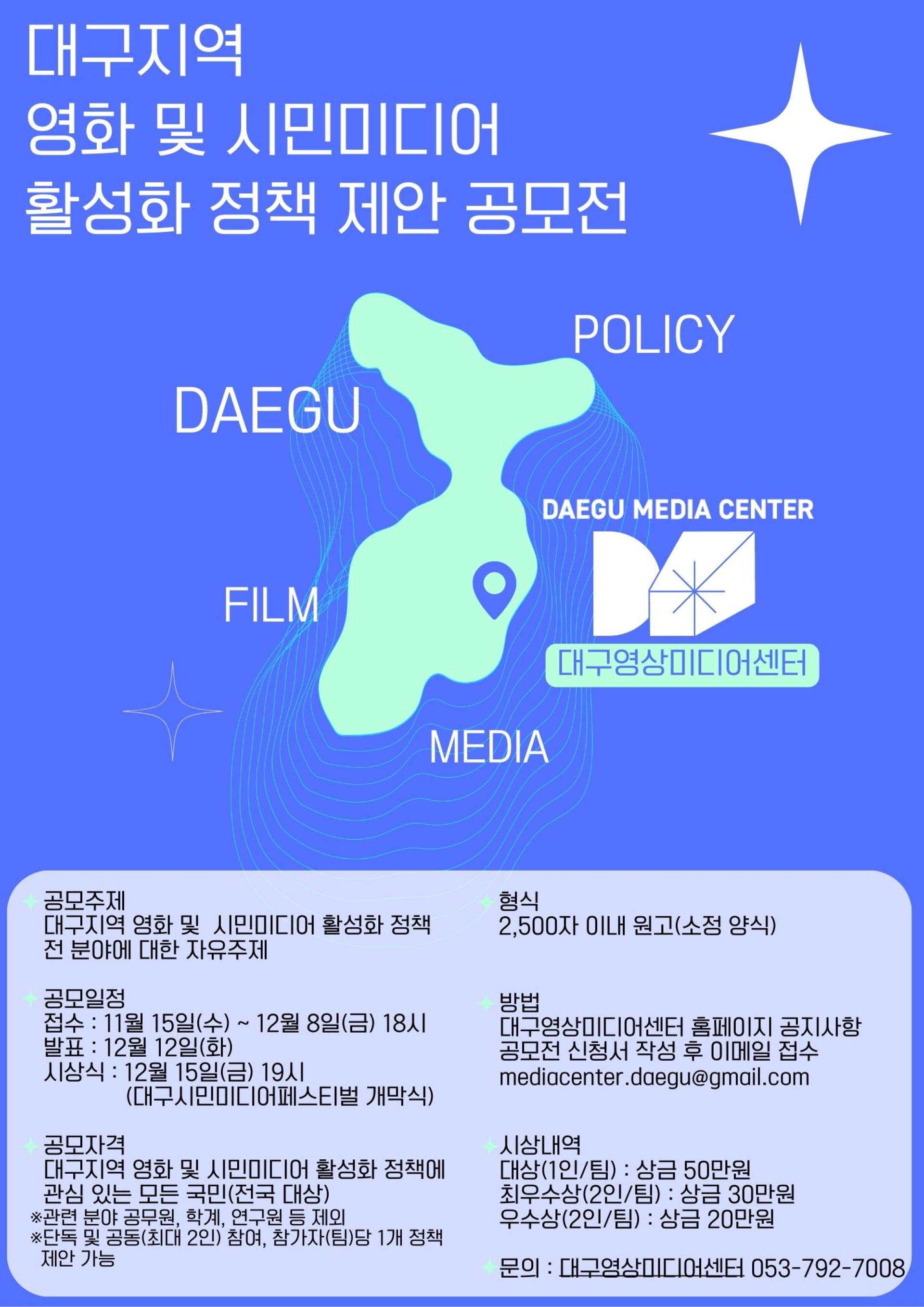 - 대구지역 영화 및 시민미디어 활성화 정책 관심 있는 모든 국민 (전국 대상)