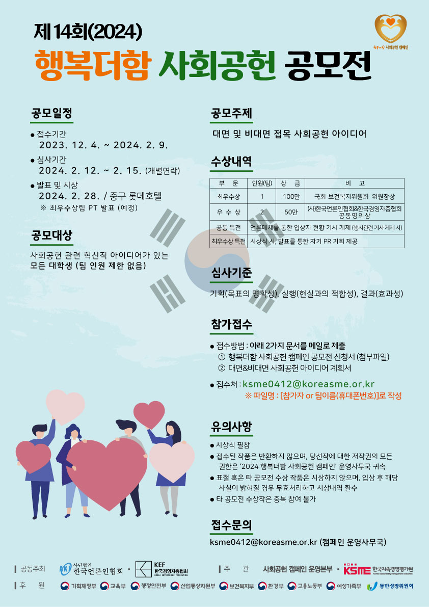 - 제14회(2024) 행복더함 사회공헌 공모전을 개최하오니