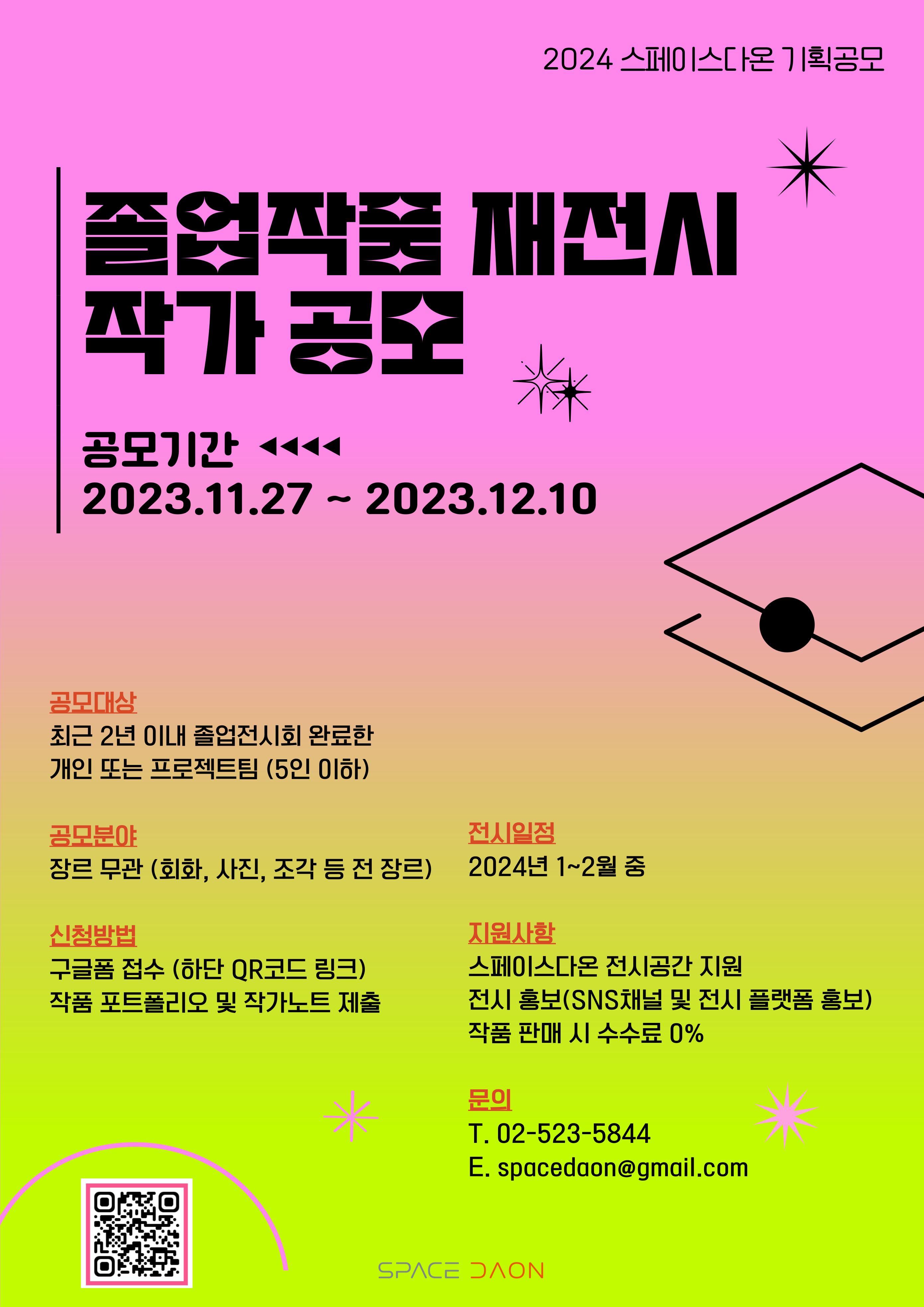 - 본 공모전을 통한 전시는 스페이스다온의 대관 지원으로 진행됩니다.