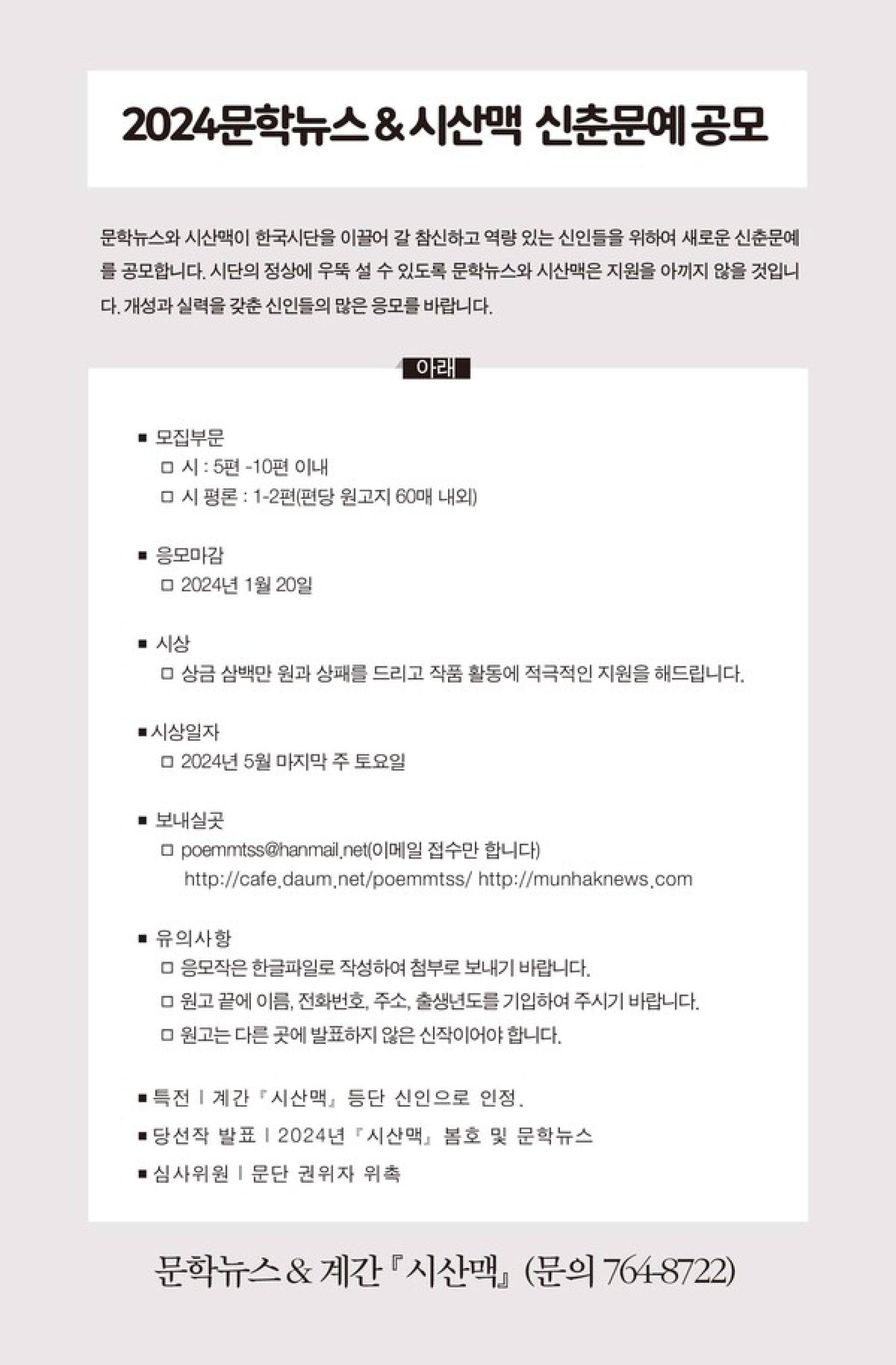 2024 문학뉴스 & 시산맥 신춘문예 공모