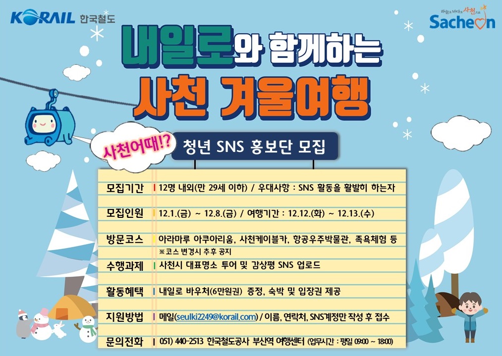 2023년 사천시 겨울여행 SNS 내일로 홍보단 모집